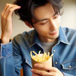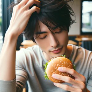 ファストフードのもう一つの問題は、栄養素の不均衡です。ファストフードは通常、必要なビタミンやミネラルを十分に提供しません。髪の毛の成長と維持には、ビタミンA、ビタミンE、亜鉛、鉄分などの栄養素が重要ですが、これらはファストフードの食事では不足しがちです。この栄養不足が長期化すると、髪の健康が損なわれ、薄毛のリスクが増大します。